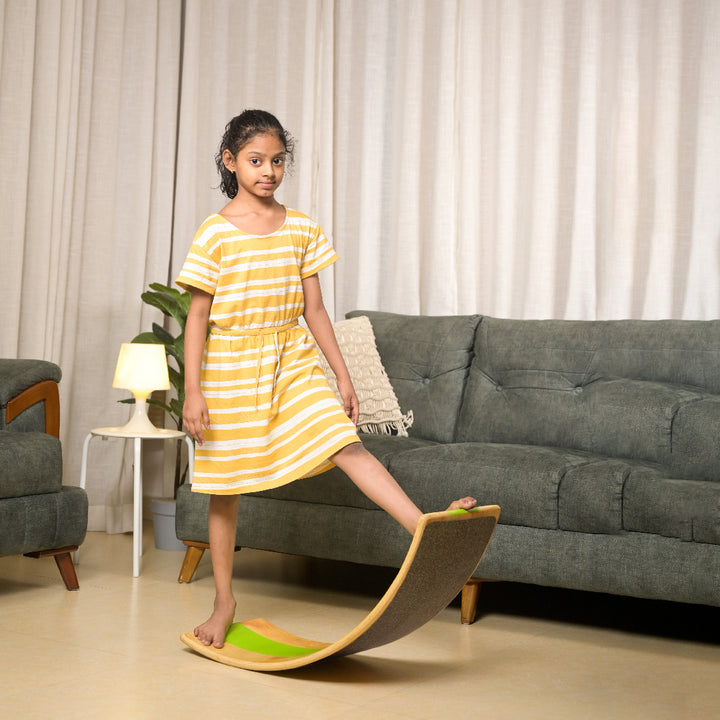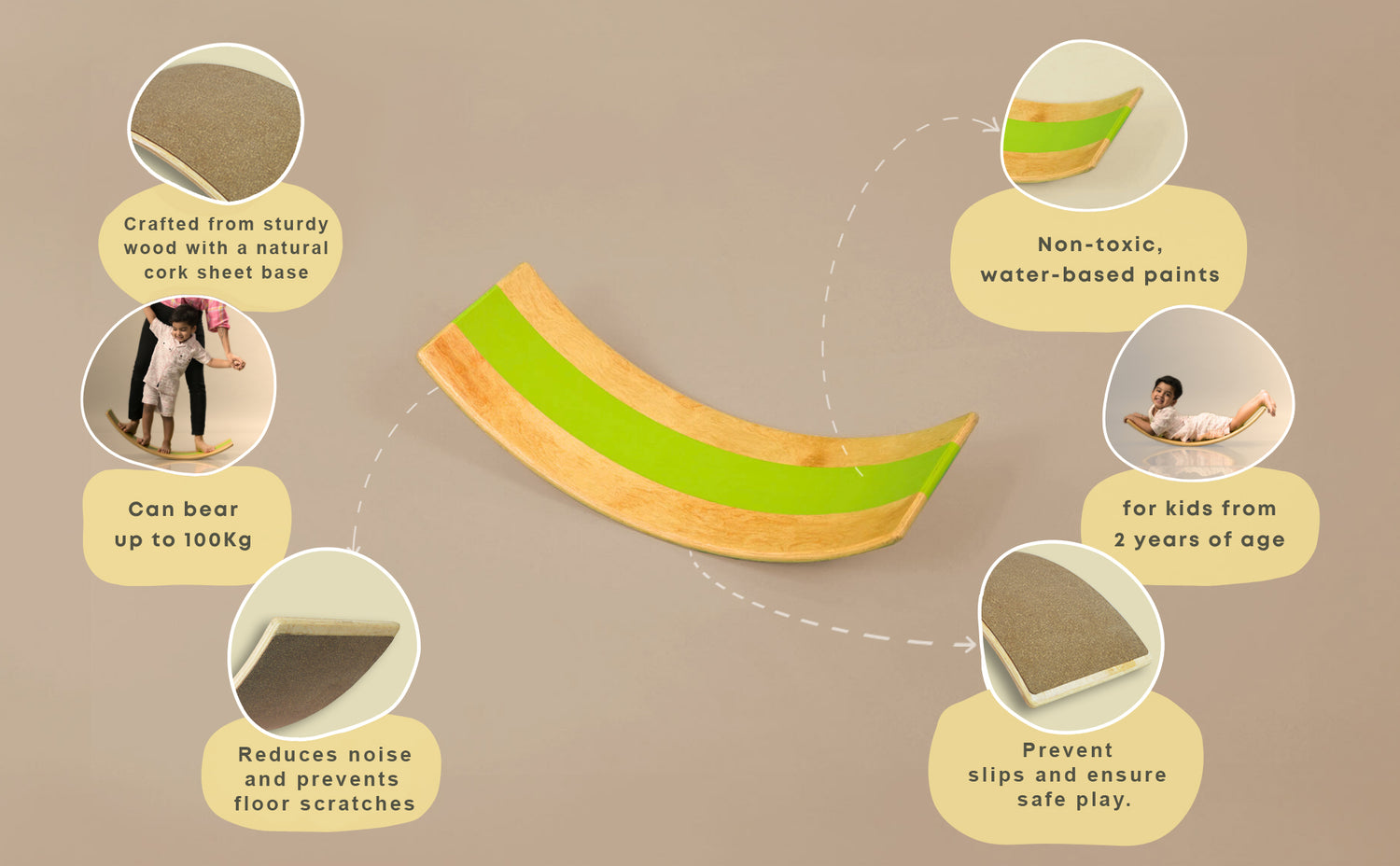 The balancing board is a delightful toy, it also provides numerous developmental benefits. As children engage in rocking, balancing, and maneuvering on the board, they enhance their core strength, gross motor skills, and balance control.