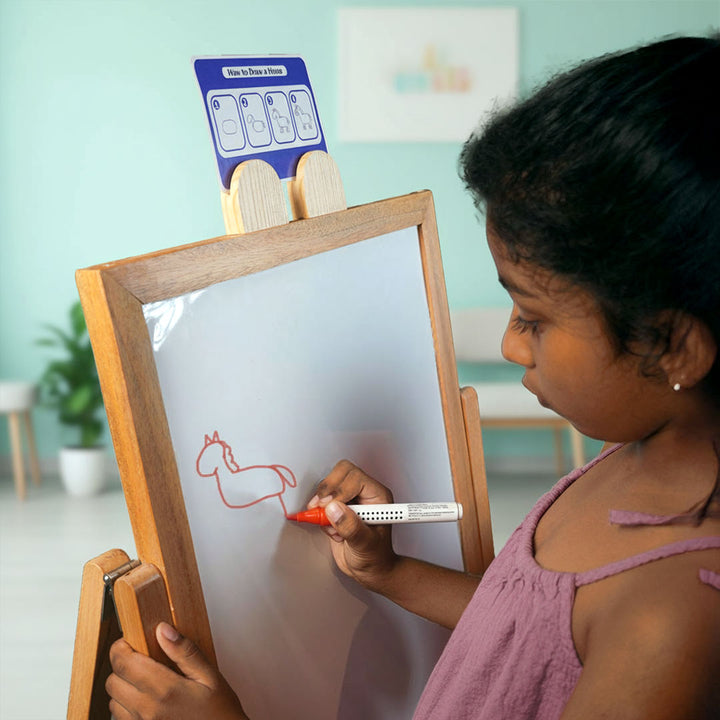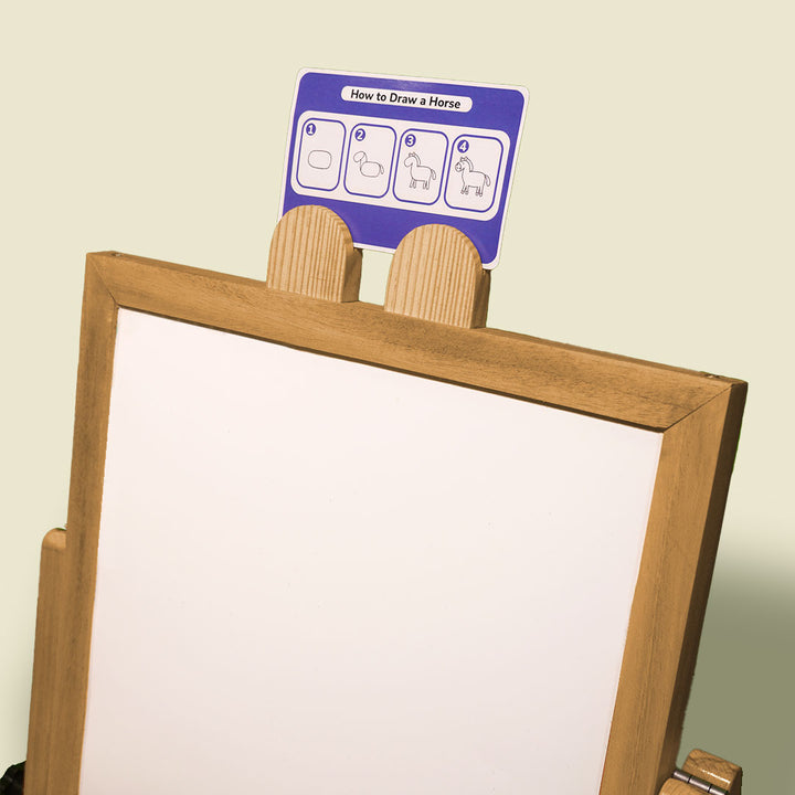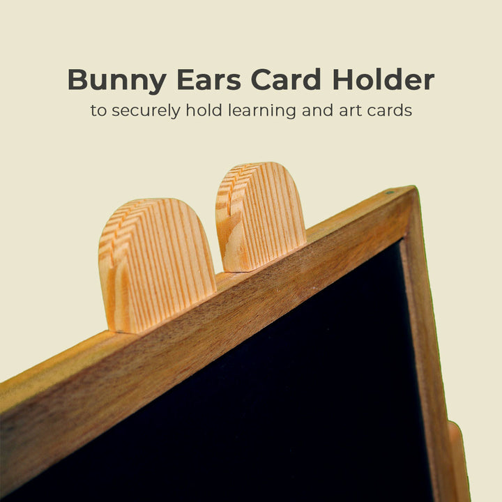 - Bunny Ears Card Holders: Cute wooden clips on top of the easel to securely hold learning or art cards.