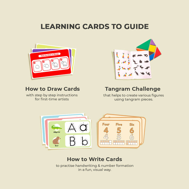 - 30 Learning Cards (Drawing, Tangram & Writing)