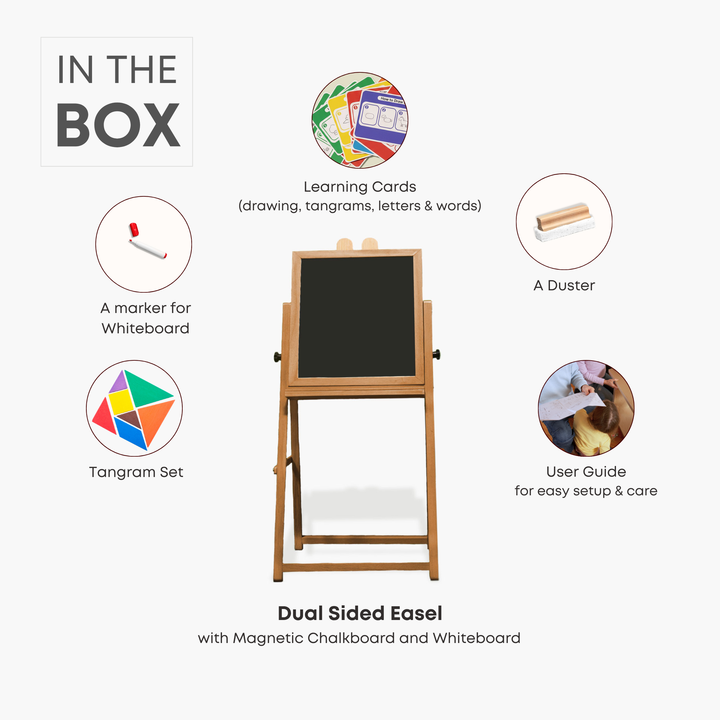 - 1 Dual-sided Easel (a Magnetic Whiteboard & a Chalkboard)