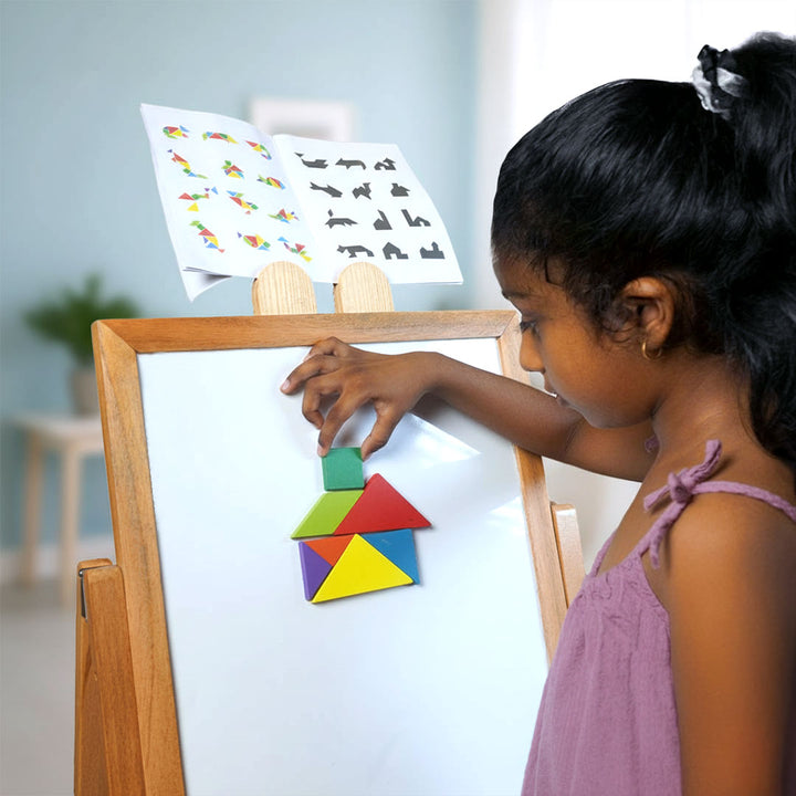 - Comes with Marker, Duster, Tangram , Activity cards – 30 numbers
