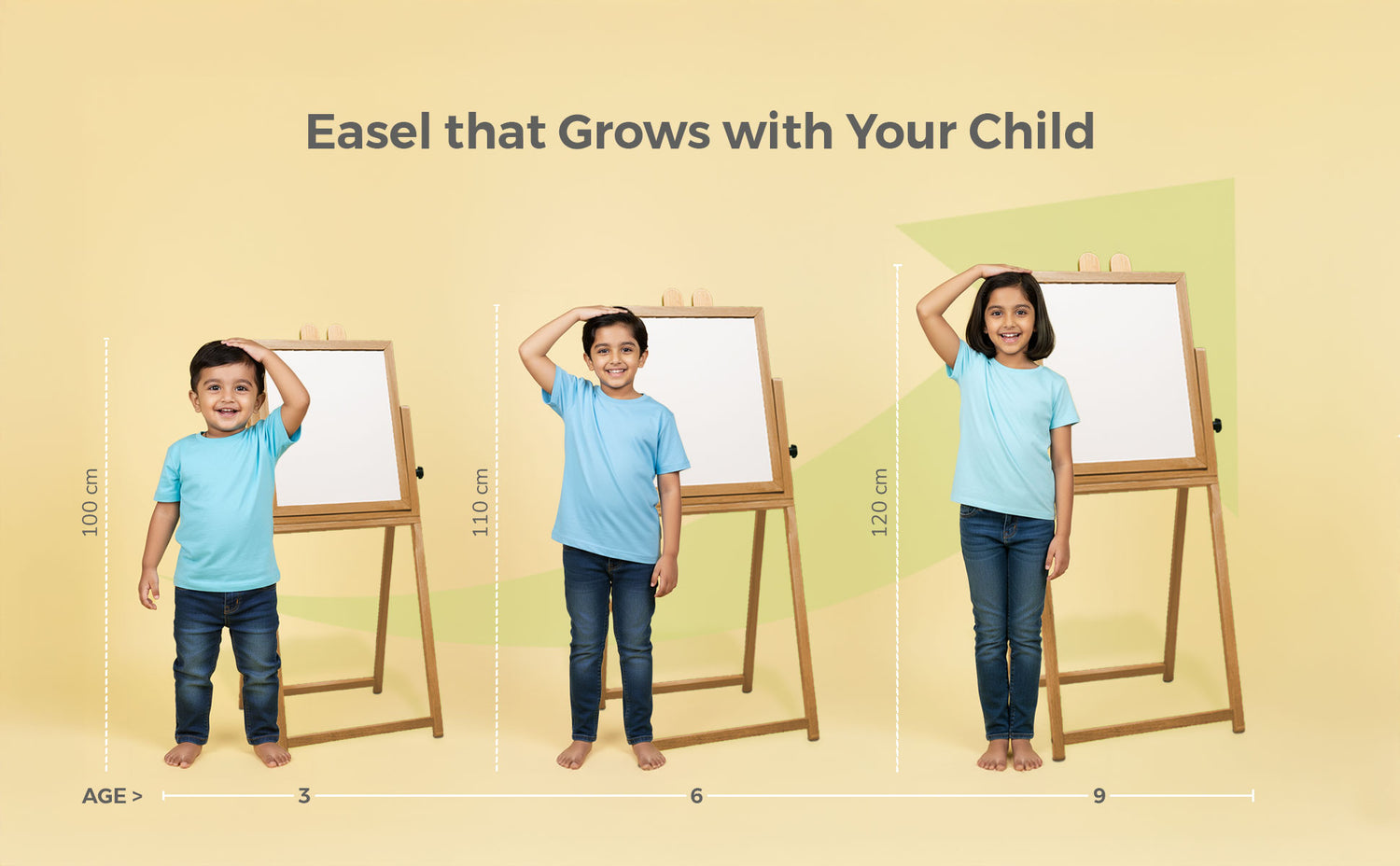 The Aariv Genius Easel is more than just an easel, it’s a complete creative companion for your child’s artistic journey. Thoughtfully designed to inspire imagination and skill-building, it combines functionality, aesthetics, and learning into one beautiful wooden structure.