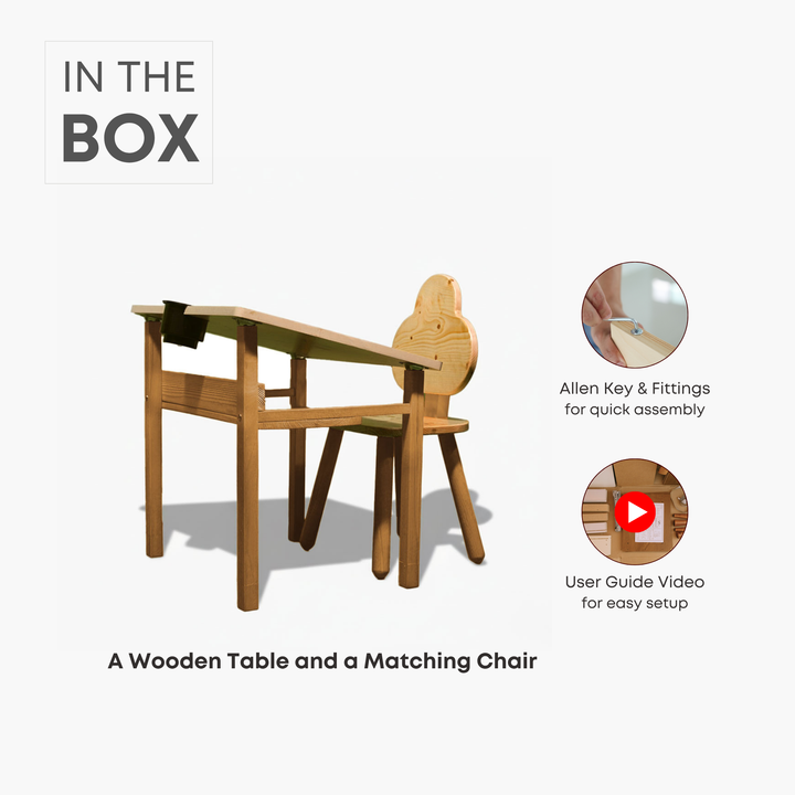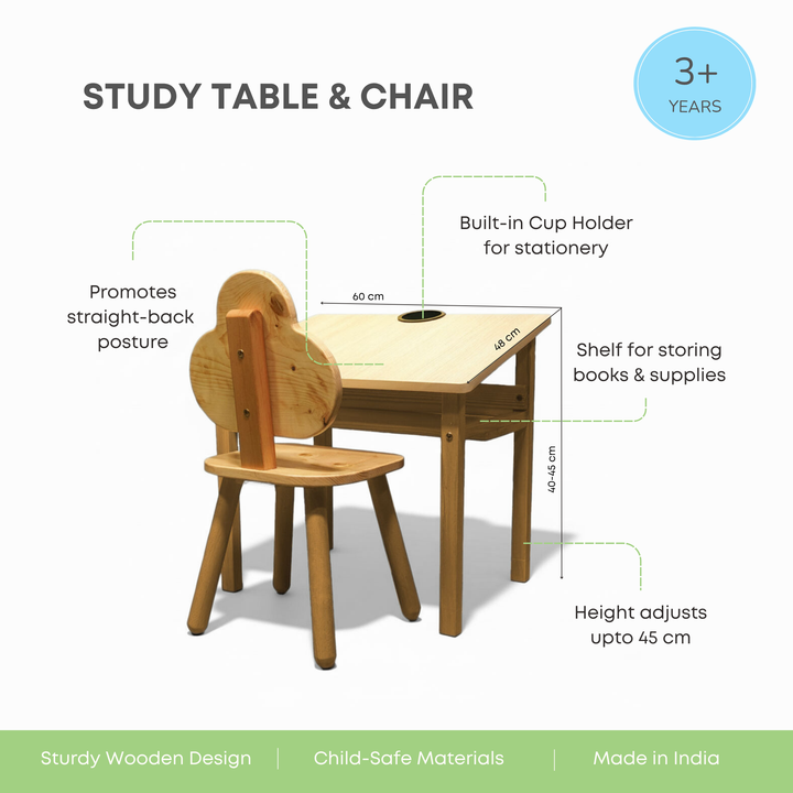 The Aariv Kids Table & Chair Set is a thoughtfully crafted learning and activity space designed to support your child’s posture, comfort, and creativity. Built from premium beech wood and engineered for durability, this set is ideal for study, art & play, growing beautifully with your child’s daily routines.